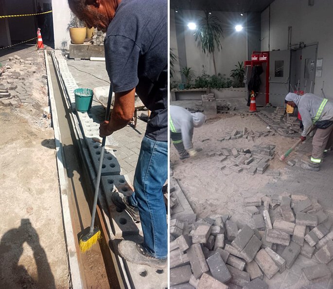 Os blocos colocados podem ser retirados e recolocados, permitindo consertos subterrâneos em calçadas, sem danificar a estrutura;