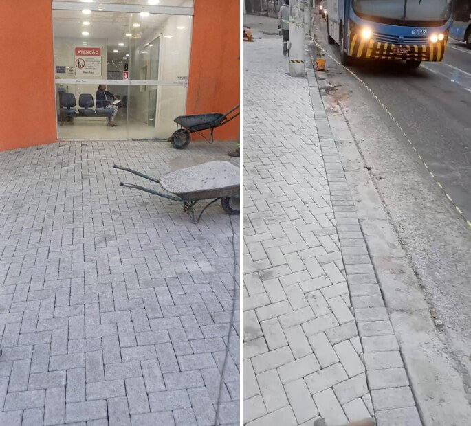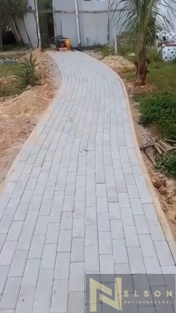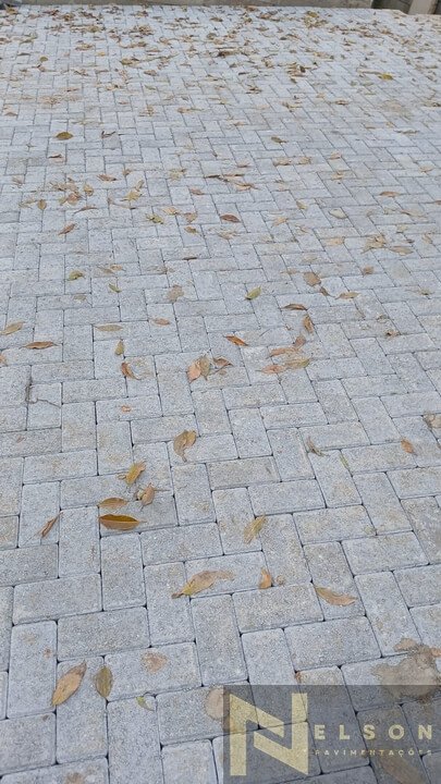 Preparação de base com máquina, nivelamento, assentamento do piso 16 Faces, arremate, rejunte e compactação.